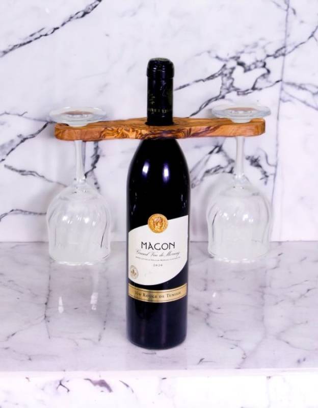 Elegant Olive Wood Wine and Glass Holder – Refined Craftsmanship – The Perfect Gift!