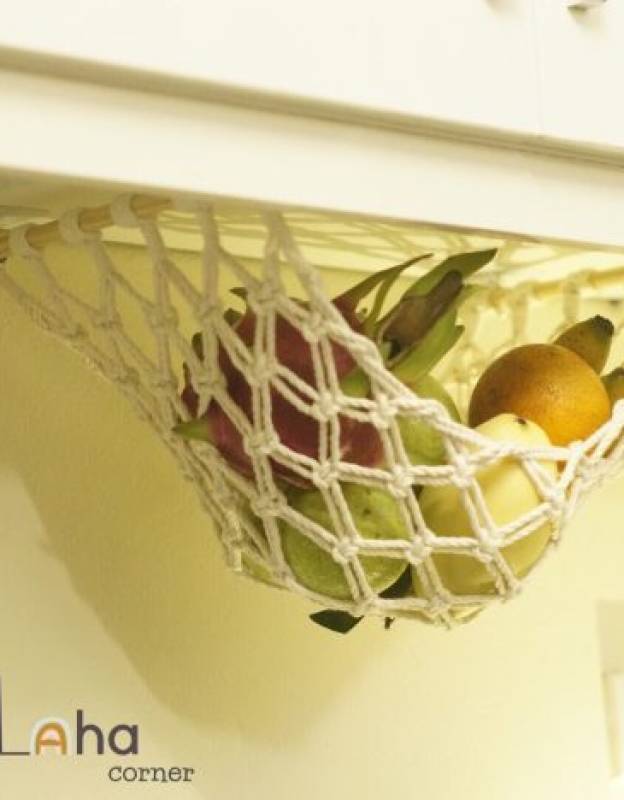 Lovely Mother’s Day Gift,Macrame Veggie Hammock, Kitchen Counter Space Saver, Fruit Hammock Under Cabinet | Produce Storage | Hooks Included