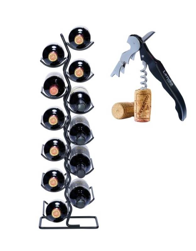 Lendo Online Wine rack for 12 bottles 22x16x70cm (LxWxH) Wine cabinet Wine bottle holder Wine storage with corkscrew Black Metal Steel Bottle rack Seller details
