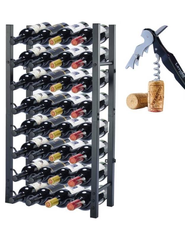 Lendo Online Wine rack for 32 bottles 45x20x80cm (LxWxH) Wine cabinet Wine bottle holder Wine storage with corkscrew Black Metal Steel Bottle rack Seller details