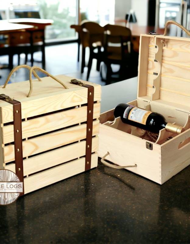 Luxury Wooden Wine Case | Portable Wine Box for Gift | Rustic Kitchen Decor | Gift for Wine Lover | Gift for Couples | Leather Strap Box
