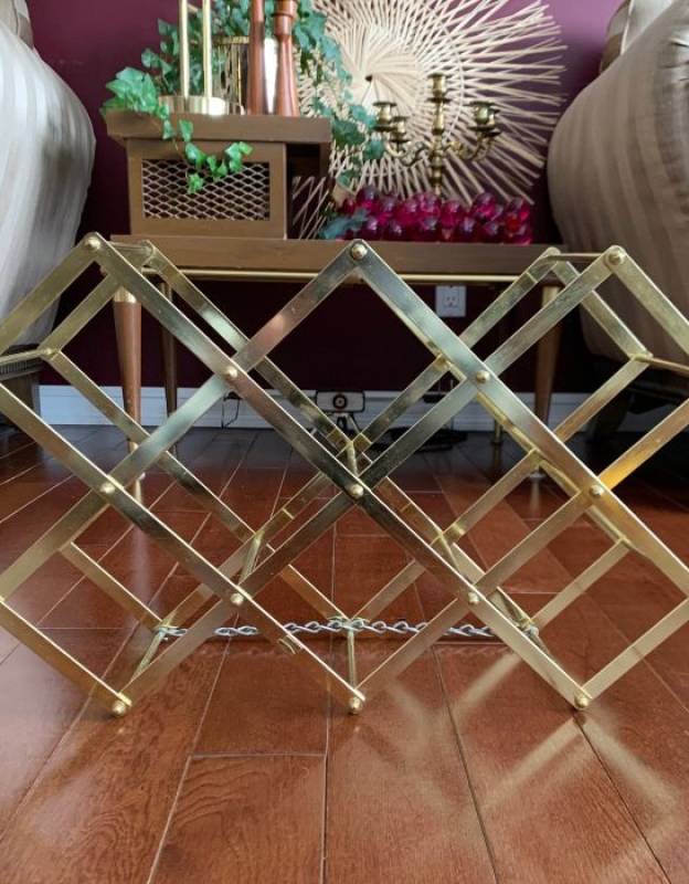 Vintage Brass Accordian Folding 8 Bottle Wine Rack Hollywood Regency Mid Century Decor