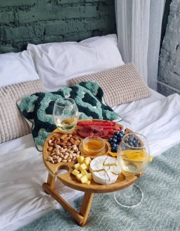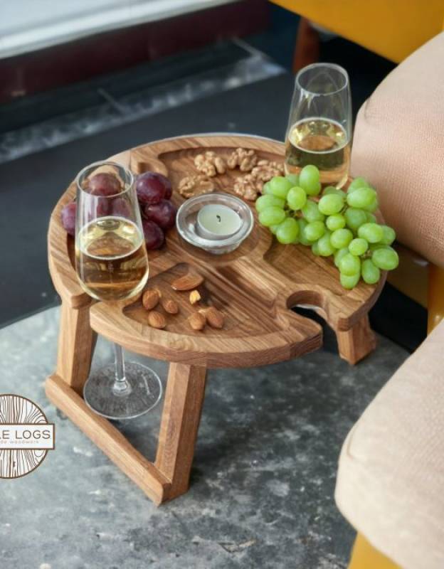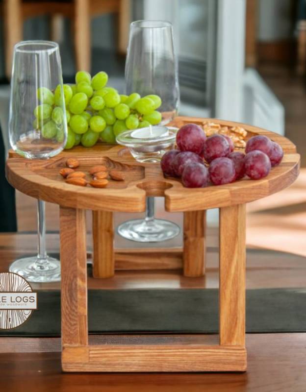 Wooden Wine Table Charcuterie Board | Portable Wine Table | Rustic Kitchen Decor | Gift for Wine Lover | Gift for Couples | Wine and Cheese