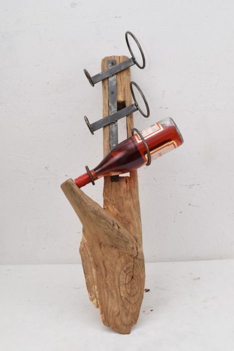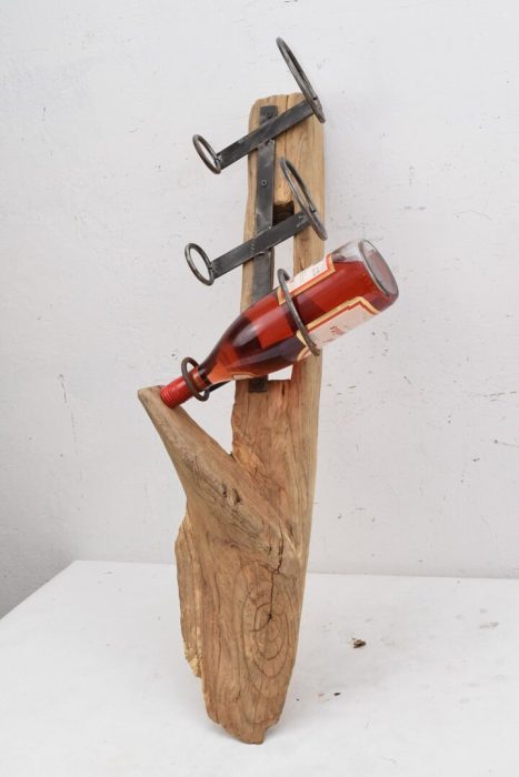 Art Work, Stand Bootle Teak Wood, Rustic Wooden Bottle Holder, Metal Stand for Alcohol, Unique Wine Bottle Stand, Home Decor