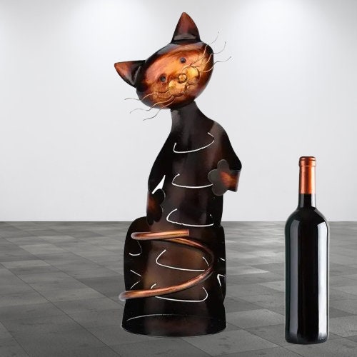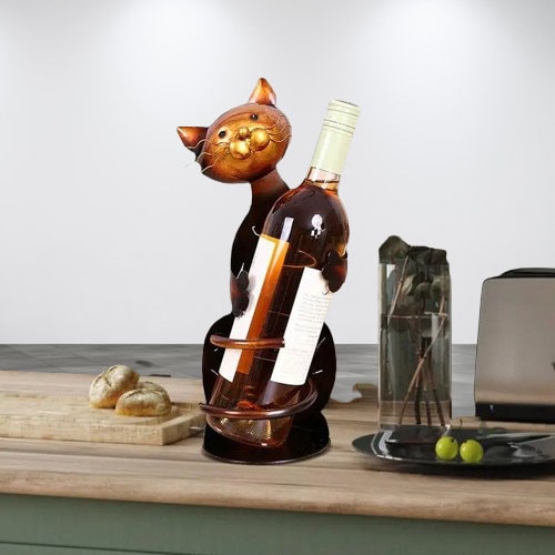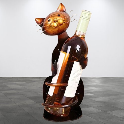 Embrace the charm and functionality of our Artistic Cat Wine Bottle Holder, a perfect fusion of whimsy and practicality designed to elevate your home decor and wine display. This cat-themed wine bottle holder not only serves as a secure cradle for your favorite wines but also stands as a testament to your unique style and love for feline finesse.