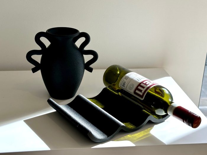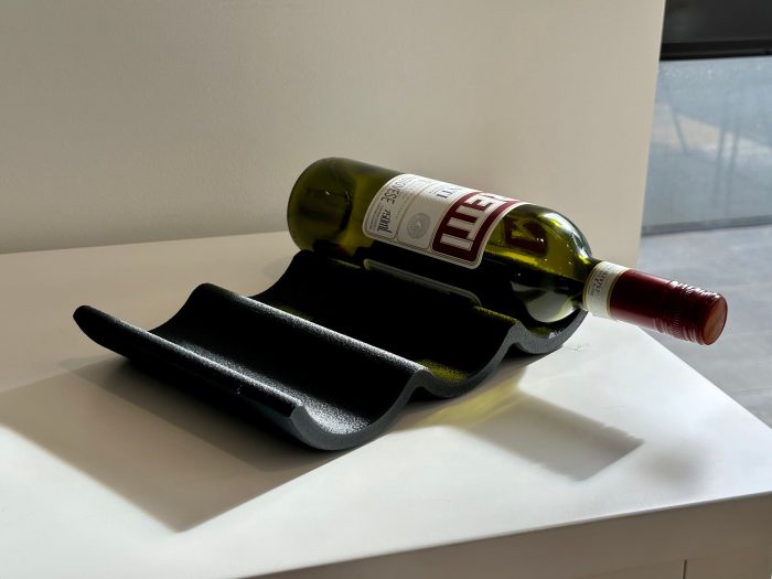 The Bordeaux Wine Rack is a minimal, clean Scandinavian design, yet with a bold wave like features designed to hold a Bordeaux Wine bottle. The product has a textured unique finish, perfect for a modern home. It is made from an organic and environmentally friendly material, a bio-plastic obtained from corn! Its composition makes it a completely renewable material, created with additive manufacturing minimising waste.