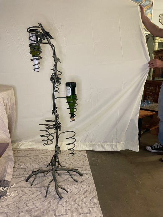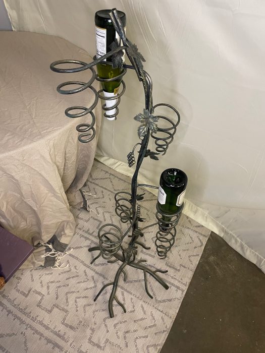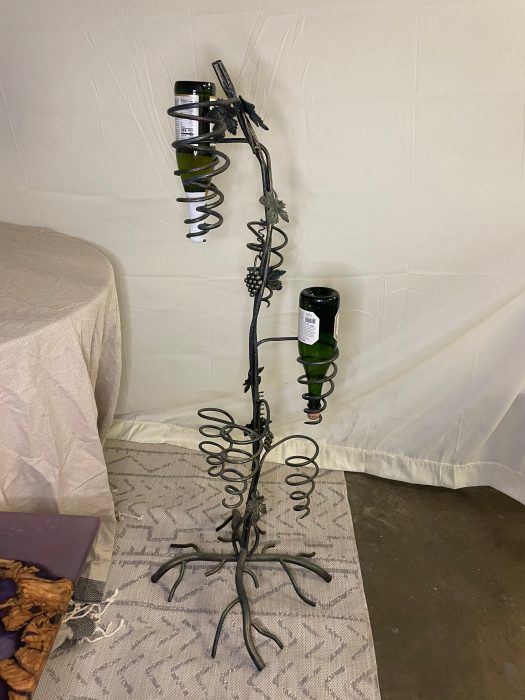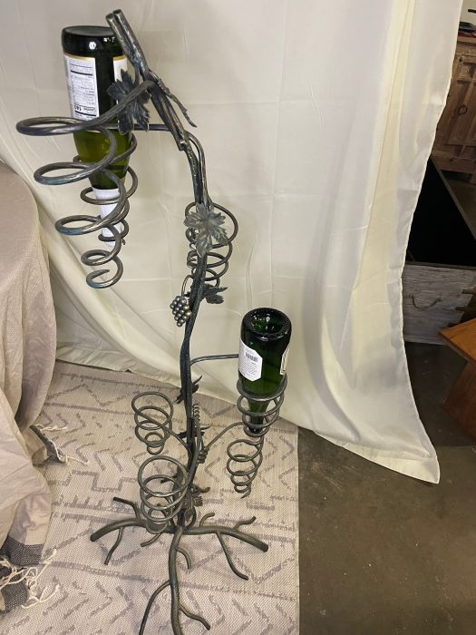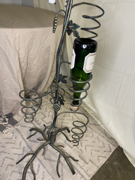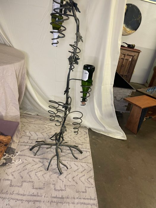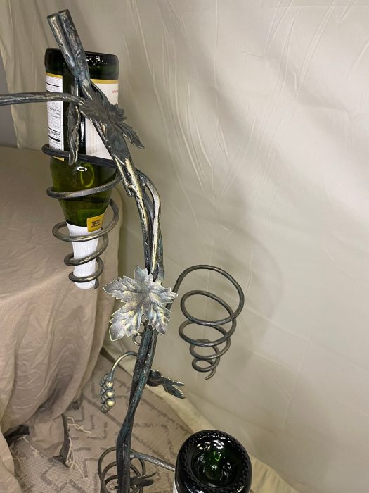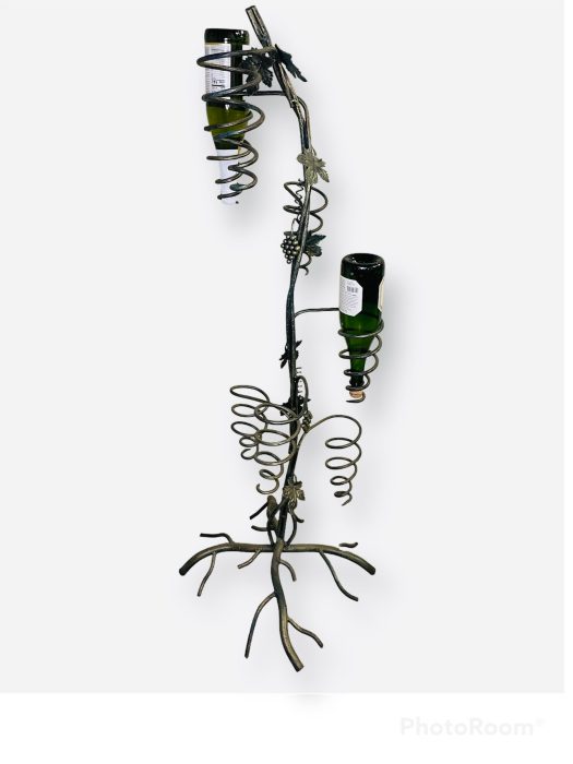 Unique Tree design to hold wine bottles that gives a great decoration to your home . Handmade iron tree design that hold 7 bottles of wine . Green color with gold touch to give richness for the peace. Tree dimensions 16*16*52 . Size and Shape may varies