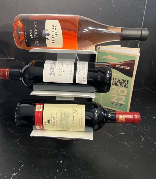 Free-standing wine holder to enhance your interior and showcase up to three of your beautiful bottles