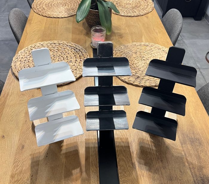 Available in white, black, gold, silver and gray which matches the raw metal.