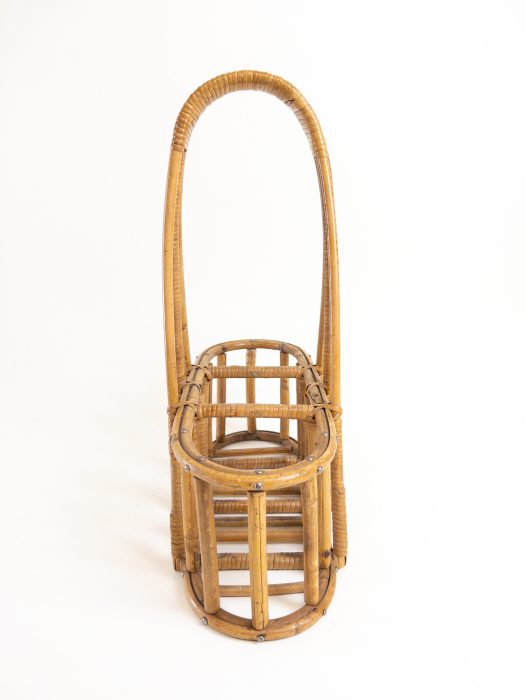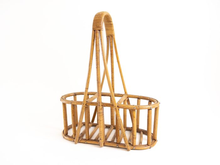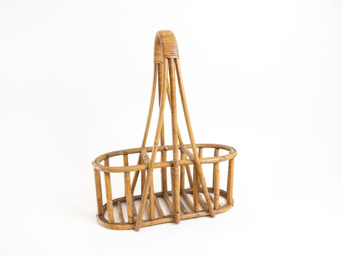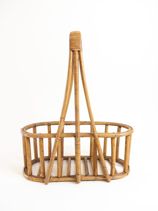 Condition: The bamboo basket shows signs of use and may not be as strong as when new. The wine bottle holder can hold 3 bottles but please always support the base. There is some tape on one of the bamboo rungs, I have left it in place as it doesn’t disturb the overall piece.