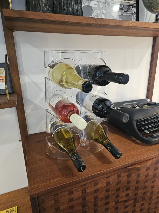 Very nice acrylic wine rack made by Umbra. Space age style.