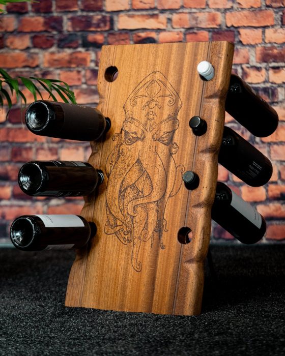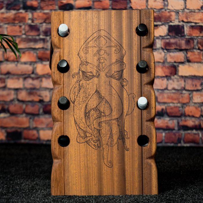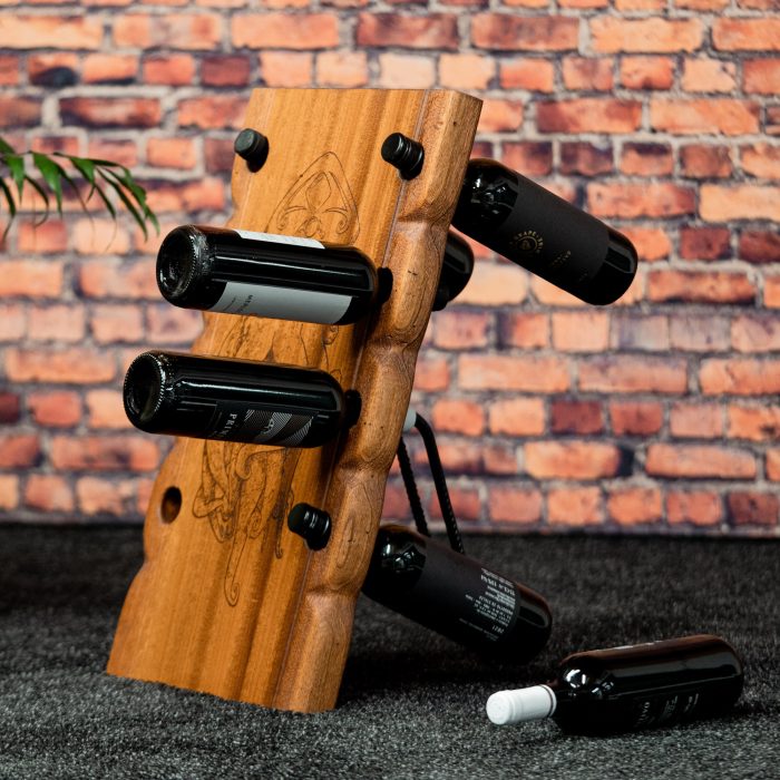 Geben Sie mit diesem Einzelstück Ihrem Wohn und Esszimmer das besondere etwas. Der Weinständer bietet Platz für 8 Flaschen. Sie werden begeistert sein. Die Gravur und die Größe kann nach Wunsch hergestellt werden. Das Weinregal ist 56 cm Hoch und 32 cm Breit. Der Mahagoniholz Weinständer ist in Handarbeit angefertigt. Jeder Weinständer ist ein Unikat – Das Besondere entdecken.