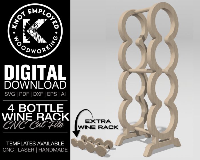 Files available in the zip folder are Svg, Ai, Eps, DXF, and PDF. With all the different files in the digital download you can modify the design in any software you use. A PDF file will also be available with all depths of cut and bit recommendations to use on this wine bottle rack. Send me a message for any details or question on making these, I’ll be happy to help in anyway I can.