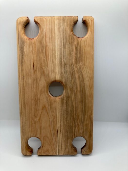 Beautifully handcrafted from choice of Maple or Walnut and designed to impress, this wine glass holder fits seamlessly over a wine bottle, creating a convenient and visually stunning display. The four strategically placed slots securely cradle your wine glasses, ensuring they are within easy reach for a delightful tasting experience. Easy to store when not in use.