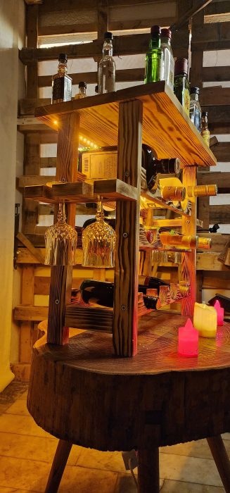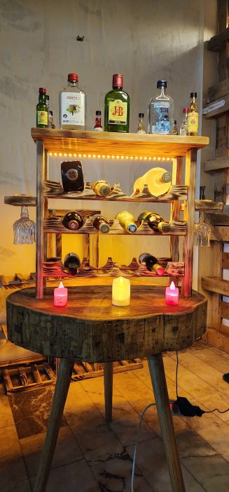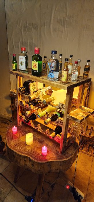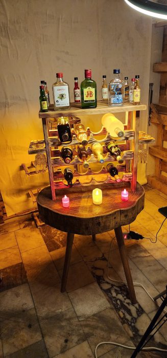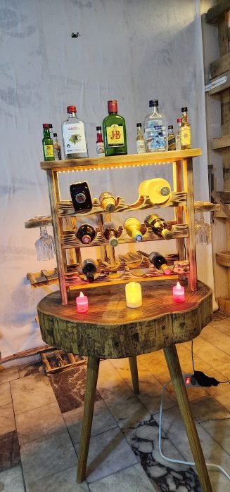 The perfect coffee table for wine lovers. The new way to increase the elegance and comfort of your home is here! Now, showcase your wine collection and wow your guests with this gorgeous custom-designed wine stand. This elegant coffee table is designed with quality solid wood material and remarkable burning process. Its surface finished with matte varnish provides an aesthetic touch and preserves the beauty of the wood. Features: 18 inches height, 19 inches width, 12 inchwa depth Three-layer shelf system, a total of 12 bottle storage capacity The bottom layer is specially carved for the elegant placement of each bottle, hangers on both sides of which a total of 4 wine glasses can be hung. Quality solid wood material, offers durability and elegance. Its elegant burning process and matte varnish surface offer a visual feast. It adds elegance to your home decor and showcases your wine collection. This wine stand offers a perfect balance of both functionality and aesthetics. Whether you use it in your living room or dining room, the elegant design and storage capacity of this wine rack offers an ideal solution for wine lovers.