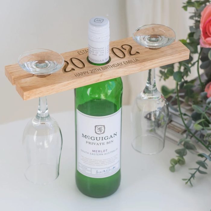 Personalise this bottle and wine glasses holder with 2 message lines and a year.
