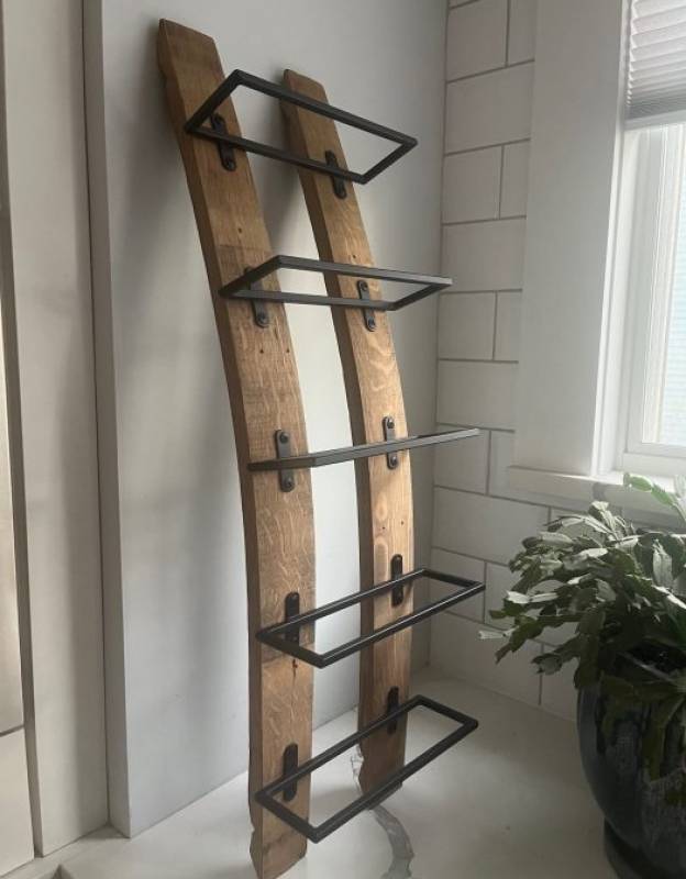 5 Bottle Wine Rack made from Wine Barrels (wall-mounted)