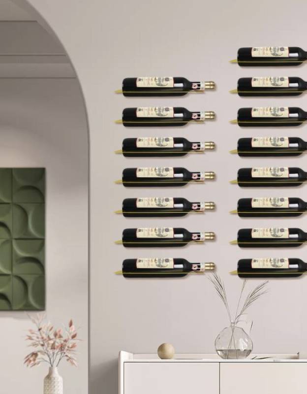 6Pcs Wine Racks Wall Mounted, Black Metal Hanging Bottle Holder, Display Rack for Standard Wine Bottles, Rustic Wine Storage Porta Bottiglie