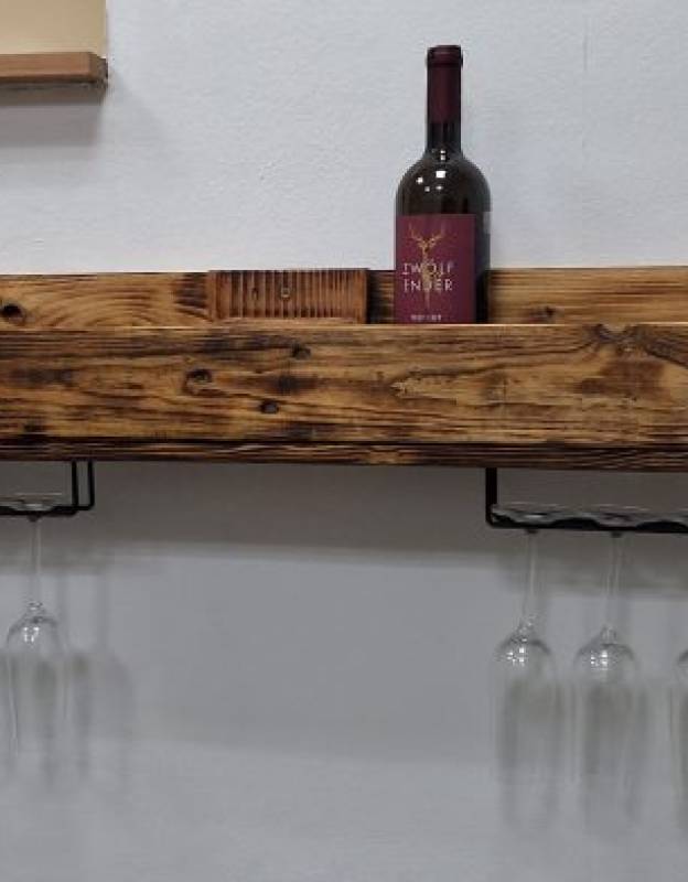 Rustic Wooden Wine Glass and Bottle Holder – Wall Mounted Storage Rack – Kitchen Organizer – Home Decor