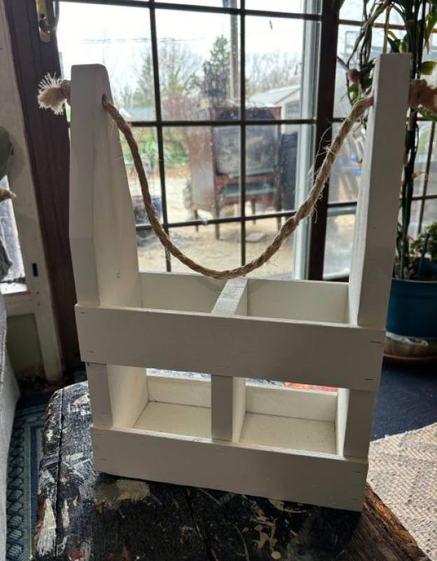 White wooden wine carrier