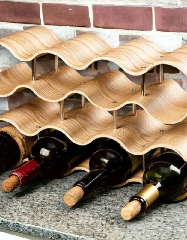 Wave Wine Rack – Wooden Wine Rack – 3 Layer Wine Holder – Kitchen Decor – Kitchen Organiser – Gift Wine Lover – Stacking Shelves