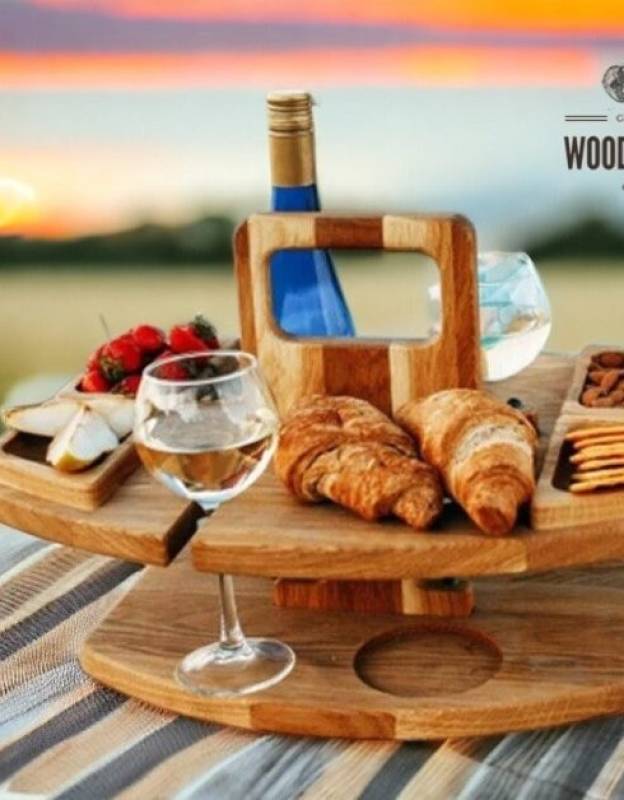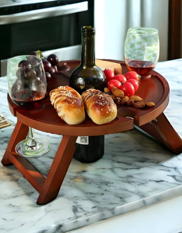 Wooden Portable Wine Table, Olive Wood Picnic Table, Rustic Wine And Cheese Board, Oak Wooden Wine Table, Kitchen Decor, Gift For Wine Lover