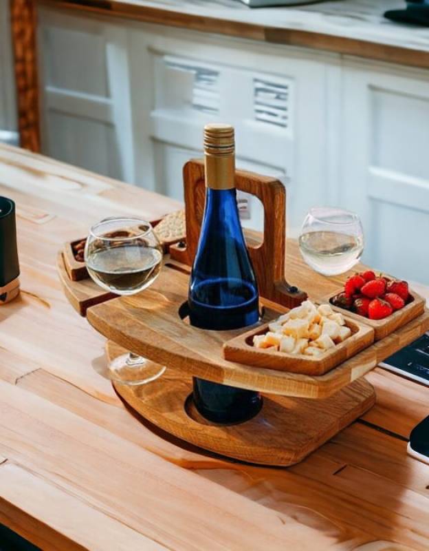 Wooden Outdoor Wine Rack Holder, Wooden Wine Glass Holder, Wooden Wine Food Rack, Gift for Wine Lovers