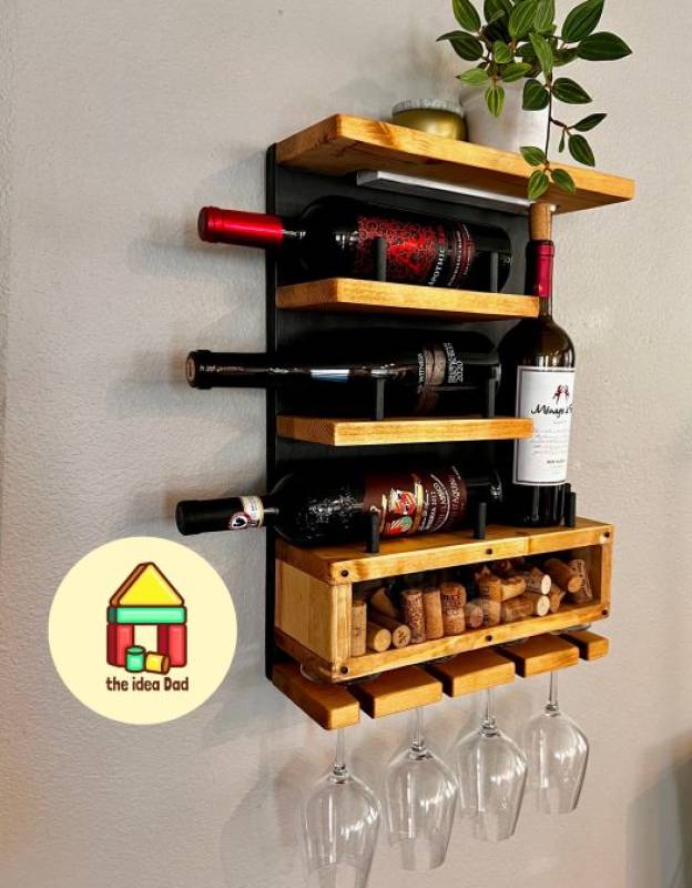 Wooden wall wine rack decor